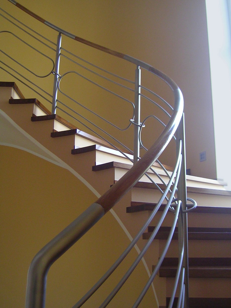 - policzkowe, samonośne, o konstrukcji stalowej – stal kwasoodporna (zakład stolarski wykonuje stopnie, podstopnie, tralki);